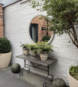 We have such a large emphasis on our outdoor life today and our outdoor area has become so much more part of our living space. Garden mirrors have become extremely popular for what they bring to an outdoor area. They bring not only a stunning feature, but also a sense of light and the added illusion of space. We install mirrors in many outdoor places from smaller courtyards to large outdoor spaces bringing beautiful personal features to view. Garden mirrors always offer reflection, dining areas used day and night look stunning when reflected into a mirror. Foliage growth around mirrors making the mirror look set into a wall and giving the feeling that it extends beyond. There are many faux mirrors available for garden use but Aldgate Home offer a piece of architectural heritage to keep for your special place. Our mirrors can be flush wall mounted or free standing against a walled area. Please send a photo of your space and we can advise pieces of our work that may suit for you.