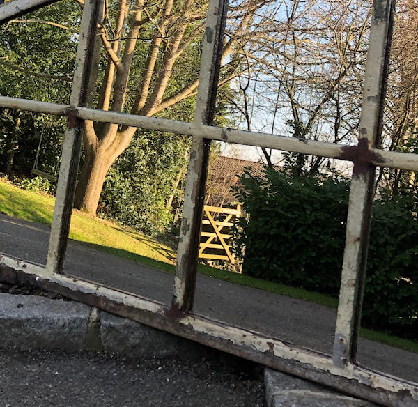 Extra extra wide style architectural window mirror. This piece is the perfect style for display over a chest of furniture or wall mounted beside a dinning or seating area. Beautiful ages natural tones with a bleed of rustic and greenish detail, making this a very characteristic mirror. Each of the 10 inner panels are completed with our hand antiqued glass mirror with its distressed aged appearance bringing warmth and a soft reflection to our mirrors. Of Belgian heritage reclaimed from a factory this is a unique find and will be sure to add great interest in a home or garden location. A beautiful piece for an outdoor dinning space with foliage or candle light reflection. All our mirrors are supplied with their bespoke wall mounting or flush wall mounting at a position of choice