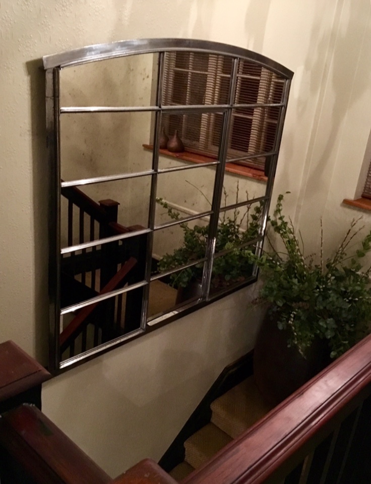 Extra Wide Hungarian Antique Slow Arch Crittal Style Window Mirror. Hand polished ironwork revealing the aged characteristics of the iron on this 15 inner panelled piece. Great flange detailed surround frames this mirror perfectly making for a strong unique interior design feature. Ctittal style windows are extremely popular again at this time replacing the bi fold door style. So to showcase an architectural piece of this style makes for a great heritage addition to an interior space. Each of the 15 large inner panels are completed with our hand crafted Italian glass mirror, which has a distressed finish and offers a soft warm reflection unlike new plain glass which can sometimes look cold in this aged frames. This mirror is supplied with our bespoke unseen wall fixings for flush wall mounting at a height to suit. Reclaimed from an Hungarian factory this large mirror also makes a large impact.