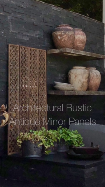Standing at just over a meter in height, this narrow elegant architectural panels bring total rustic elegance to that certain space. Restored and completed to a mirror panel these former Orangery floor grilles make a beautiful understated feature. Architectural decorative cast iron and beautiful precious aged rustic detail which totally enhances these pieces. Our hand antiqued mirror reflecting the detail all over a again. Great pieces wall mounted with a slight gap, perfect for a unique statement feature where a subtle feature is required. Suitable for home and garden display.